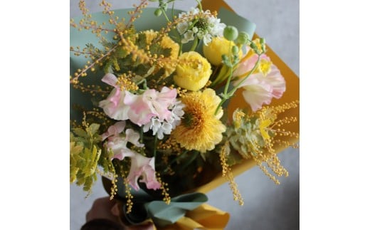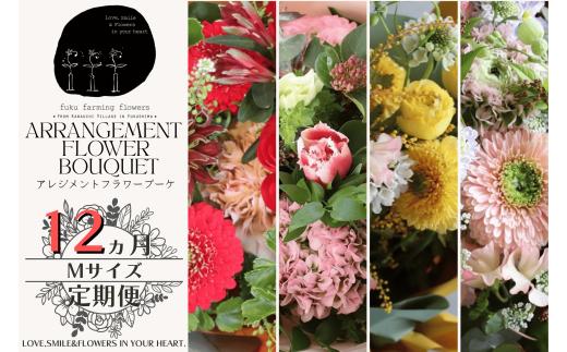 【ふるさと納税】【12ヶ月定期便】オリジナルフラワーアレンジブーケミディサイズ(Mサイズ) 季節のお花(生花)おまかせ fuku farming flowers