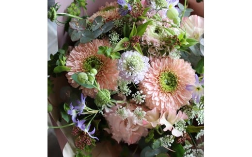 - 【ふるさと納税】【12ヶ月定期便】オリジナルフラワーアレンジブーケミディサイズ(Mサイズ) 季節のお花(生花)おまかせ fuku farming flowers