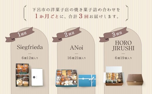 【定期便 3回】下呂の焼菓子 定期便 3ヵ月定期便(2)(ジークフリーダ&ANoi&HORO JIRUSHI)菓子 焼き菓子 横断定期 定期 毎月 定期便 岐阜県 下呂市
