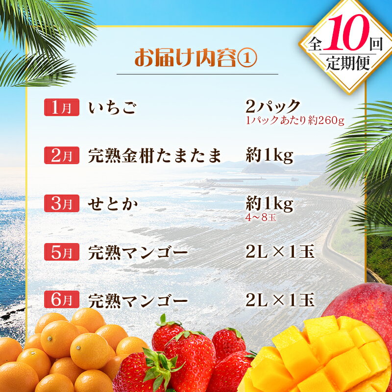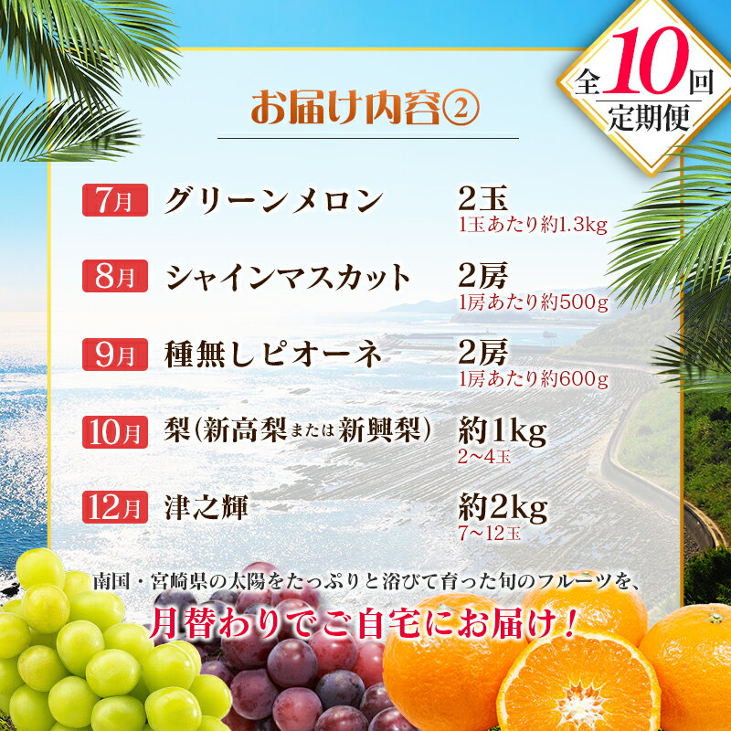 - 【ふるさと納税】【10回定期便】旬 人気 フルーツ 南国宮崎産 マンゴー 金柑たまたま シャインマスカット ピオーネ いちご みかん 梨 メロン 柑橘 きんかん ぶどう 果物 詰め合わせ 宮崎県 九州<E-2コース M600>