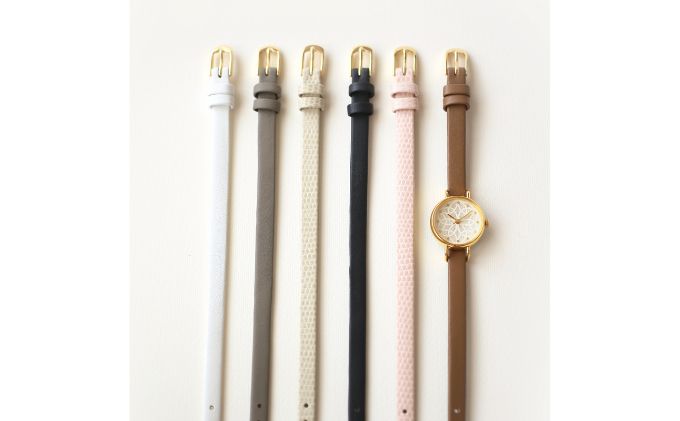 - すみだ北斎美術館オリジナル 北斎 新形小紋帳 輪ちがい麻の葉 腕時計レディース ゴールド ファッション小物 シンプル デザイン 伝統素材 手作業 7mm幅 女性標準サイズ
