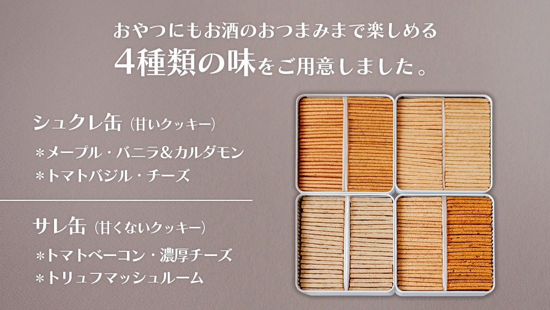 \4通りから選べる/MIRAI HAPPY COOKIE シュクレ缶・サレ缶 クッキー缶 焼菓子 シュクレ ギフト 贈り物 プレゼント 手土産 お菓子 メープル バニラ カルダモントマト バジル チーズ ベーコン 濃厚チーズ オニオン ガーリック トリュフ マッシュルーム