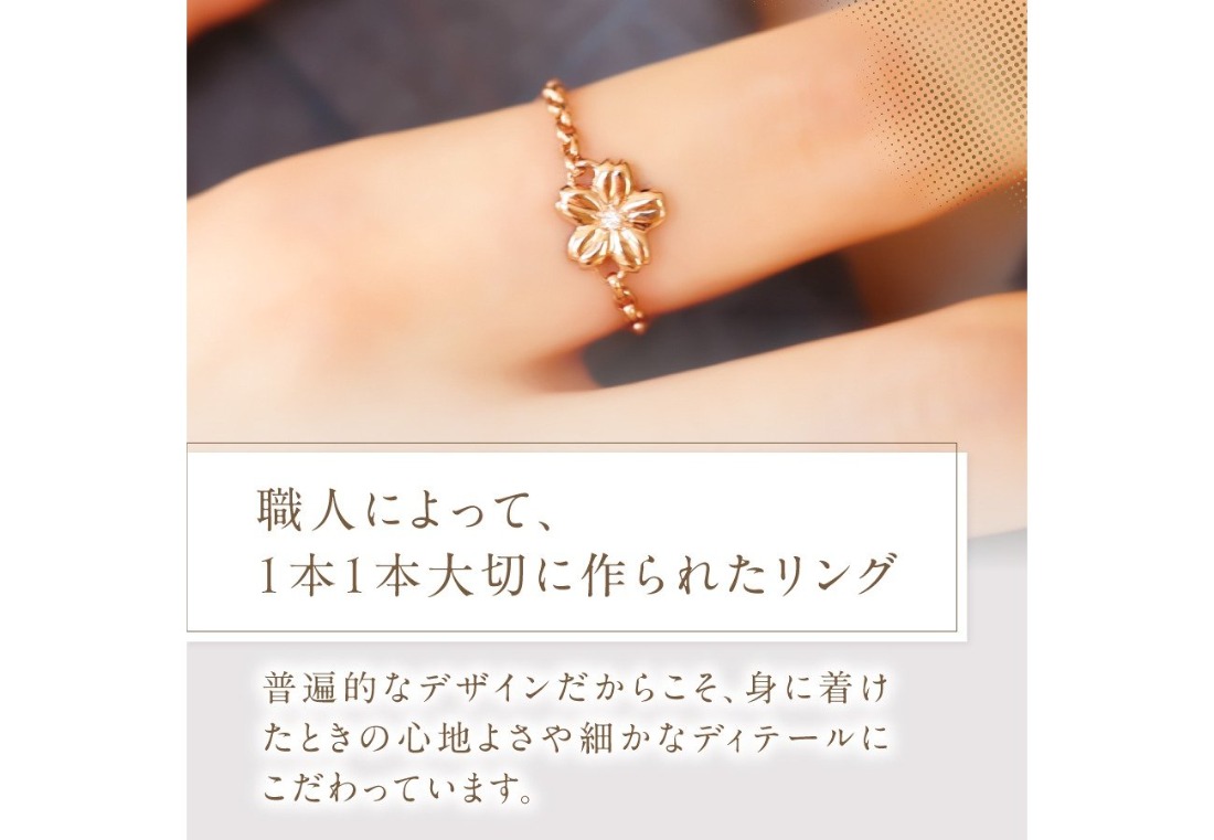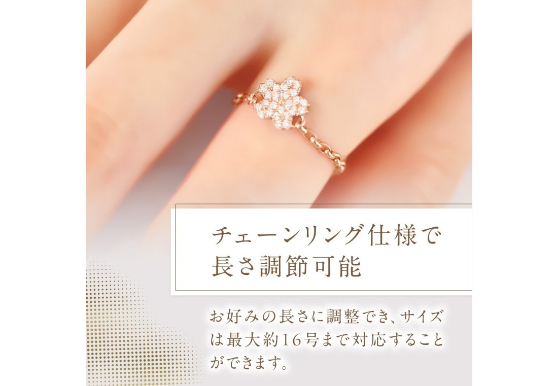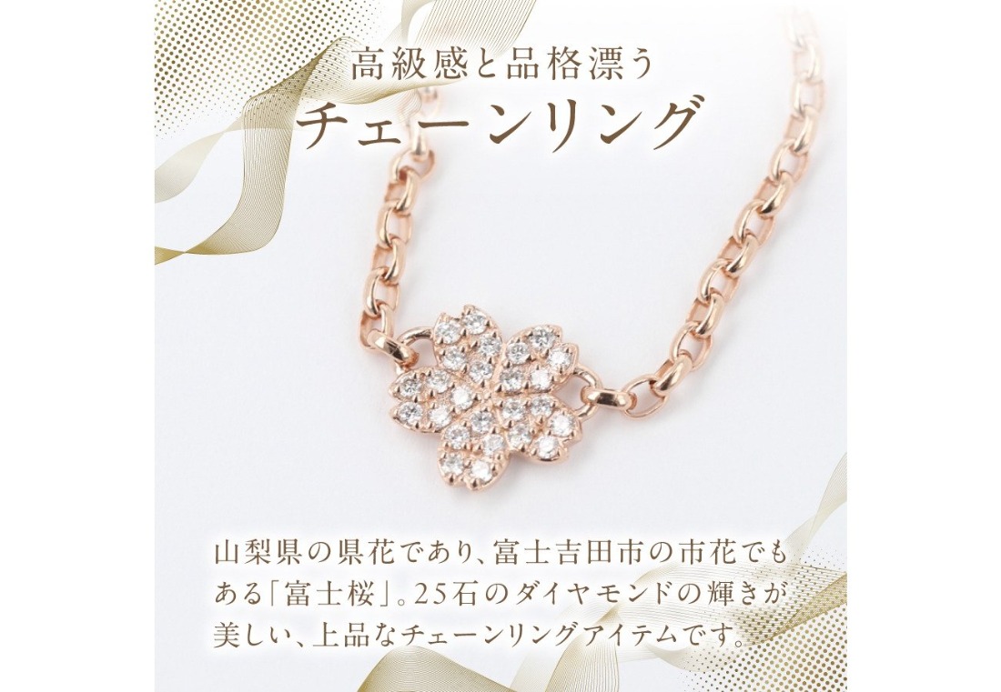 - F-004 K18PG 富士桜ダイヤモンドチェーンリング 指輪 ダイヤモンド K18 ピンクゴールド ジュエリー 山梨 富士吉田