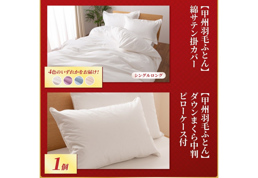 - 【 福袋 】 甲州羽毛ふとん プレミアムセットA(シングル) 寝具セット 掛け布団 本掛け シングル 掛ふとんカバー SL 中判 ダウンまくら おまかせカラー 日本製 布団 カバー 枕 3点セット 人気 快眠山梨 富士吉田