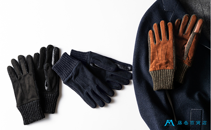 - 【KURODA】藤巻百貨店別注 やぎ革スウェードメンズグローブ スマホ対応モデル ファッション ファッション小物