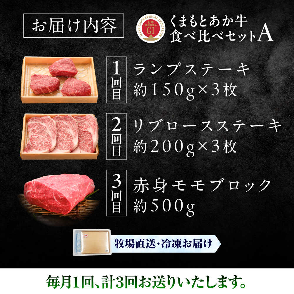 【ふるさと納税】【全3回定期便】【GI認証】くまもとあか牛 食べ比べ A / 菊陽町 あかうし 熊本県 肉 にく niku ブランド 旨み くまもとあか牛 和牛 自社牧場 直接 最高 牛 牛肉 ぎゅうにく ぎゅう肉 冷凍 国産 【有限会社 三協畜産】[BHAS024]