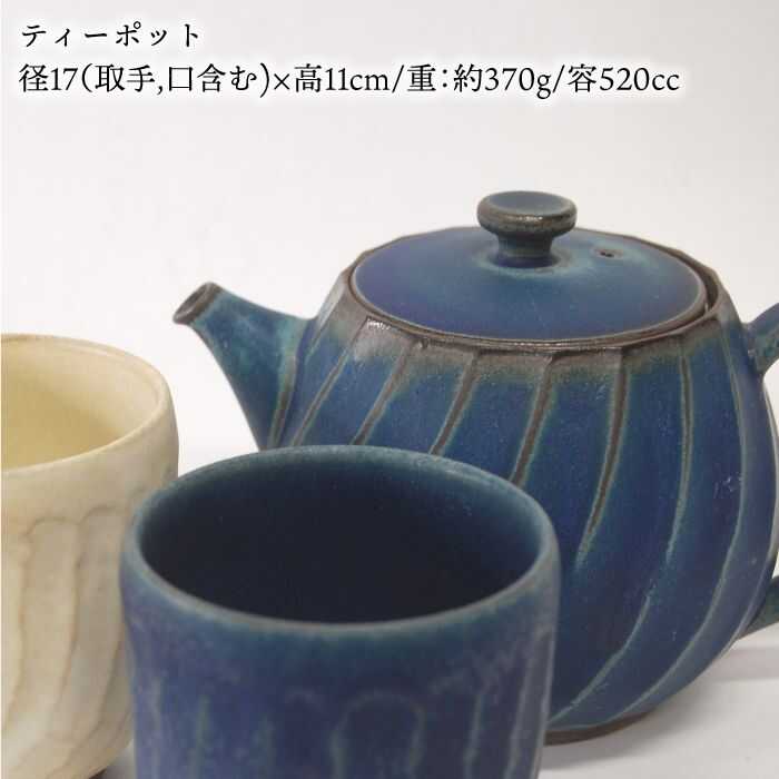 - 【ふるさと納税】【波佐見焼】瑞幸窯 ねじりそぎ ティーポット 青・ペア 湯呑み 食器 皿 【玉有】 [IE10]