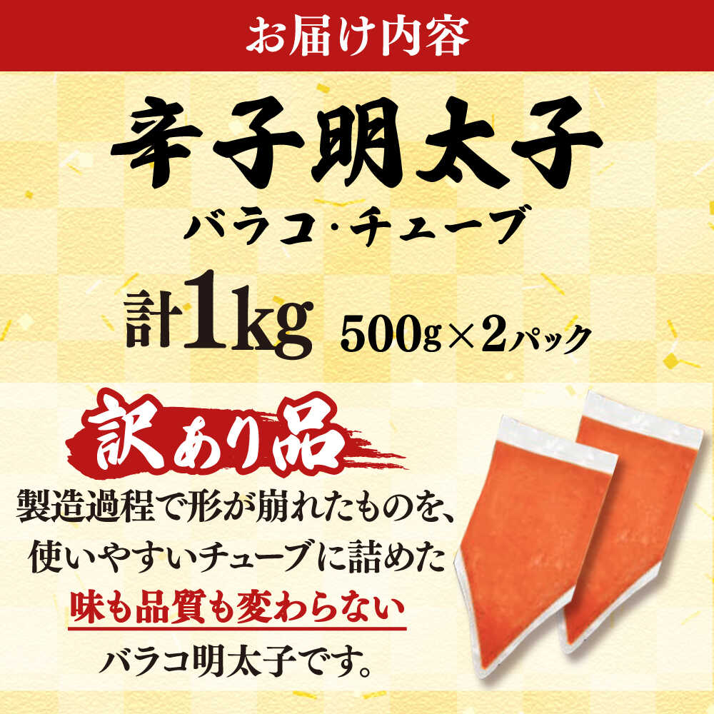【ふるさと納税】【訳あり】博多 辛子明太子 バラコ 1kg (500g×2P) 吉富町/株式会社MEAT PLUS[BGAB034] 明太子 めんたいこ 切子 切れ子 小分け おつまみ ばらこ バラ子 福岡 本場 お取り寄せ 取り寄せ 家庭用 自宅用 簡単 便利 わけあり 訳あり 食品 人気 おすすめ 冷凍
