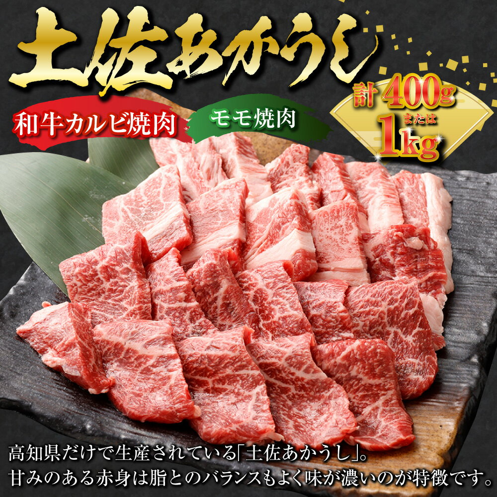 【ふるさと納税】<選べる内容量>”出荷頭数0.02%の奇跡” 土佐あかうし 和牛 カルビ焼肉・モモ焼肉 計約400g(各約200g) / 計約1kg(各約500g) あか牛 赤牛 牛肉 お肉 ビーフ 赤身 焼き肉 セット 詰め合わせ 冷凍 高知県産 国産 高知県 香美市 送料無料
