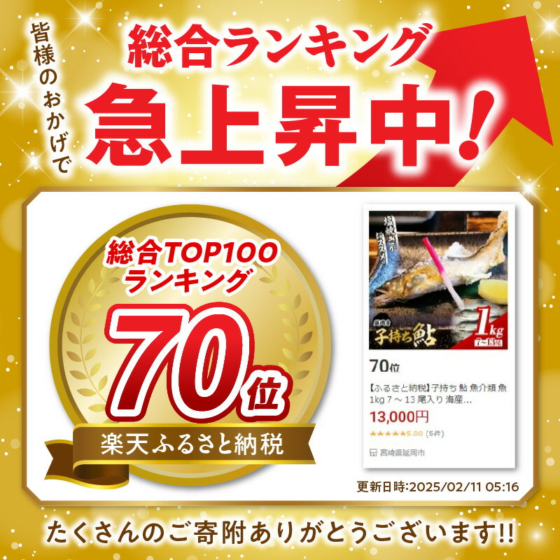 - 子持ち 鮎 魚介類 魚 1kg 7 〜 13 尾入り 海産物 国産 延岡産 冷凍 小分け 個包装 一尾ずつ袋に入れてお届け 繊細な美味しさ 便利 塩焼き 甘露煮 鮎めし 雑炊 松本水産 お取り寄せ お取り寄せグルメ 宮崎県 延岡市 送料無料