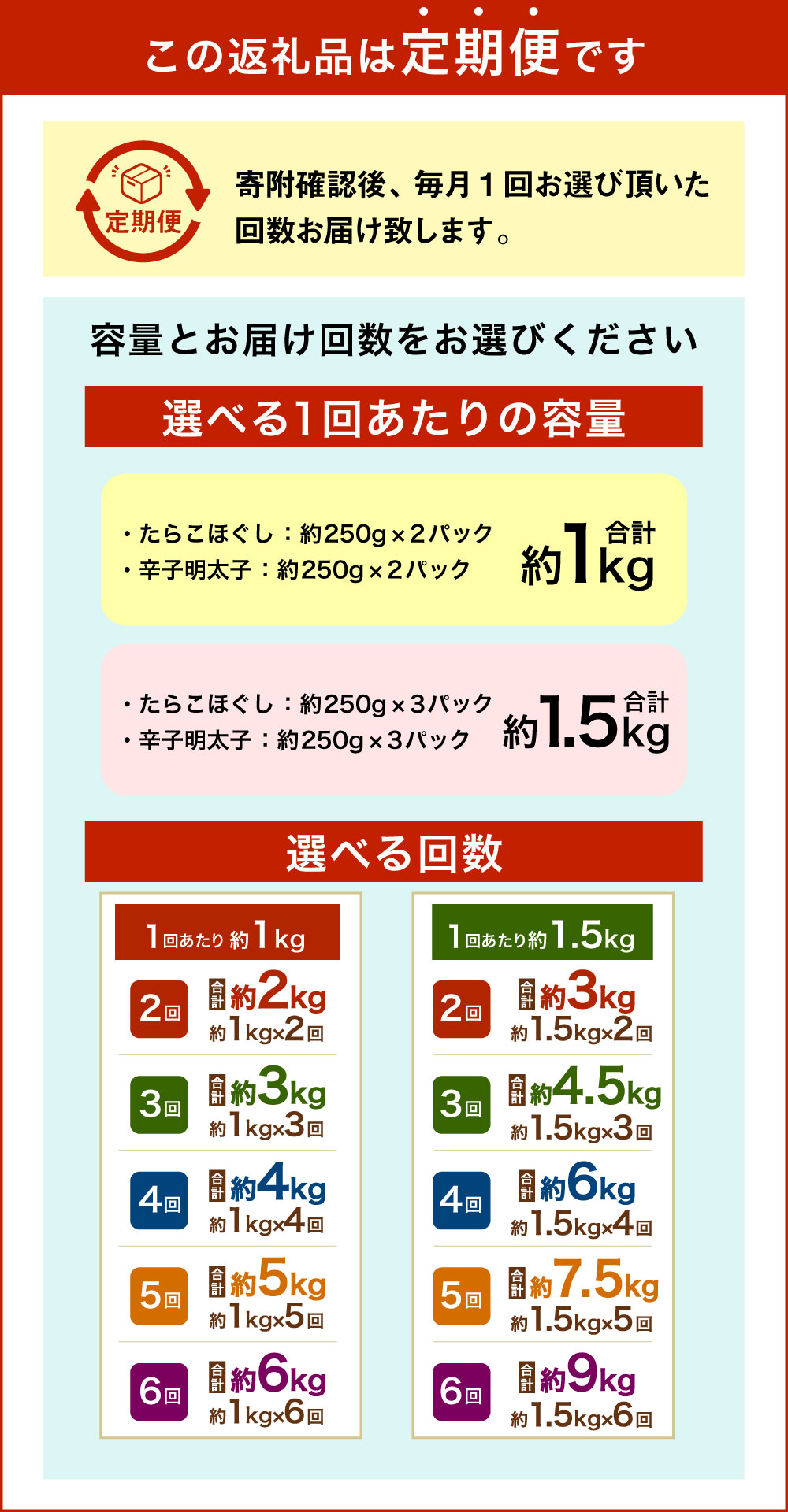 - 【ふるさと納税】【選べる容量・定期便】辛子明太子・たらこ (ほぐし) セット ( 計約1kg / 合計約1.5kg ) 1パック各250g 明太子 めんたいこ たらこ 冷凍 スケトウダラ 小樽市産 ご飯のお供 魚卵 おつまみ おかず 惣菜 海鮮 魚介類 定期便 小樽市 北海道 送料無料