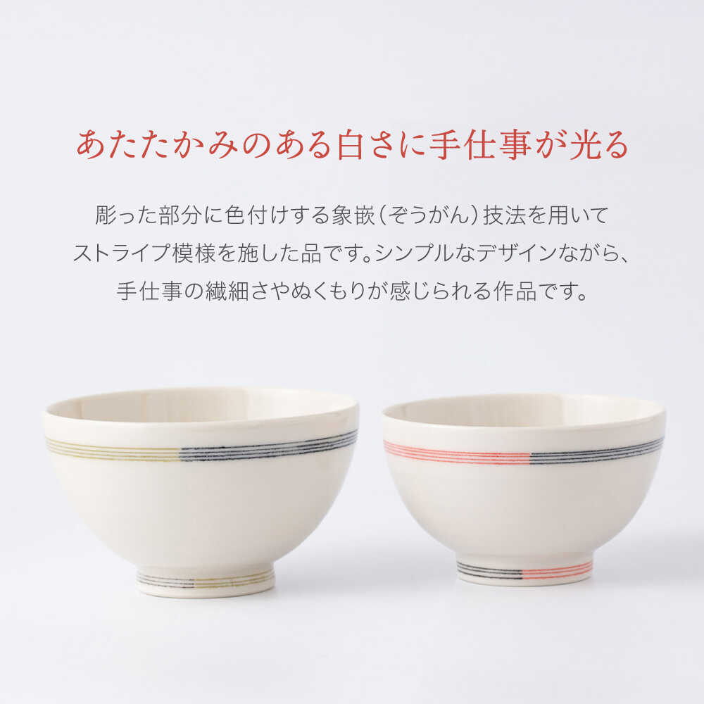 【ふるさと納税】【眞珠陶磁器工房】線彫象嵌 ペア飯碗 大小セット(緑・赤)[UEY001]