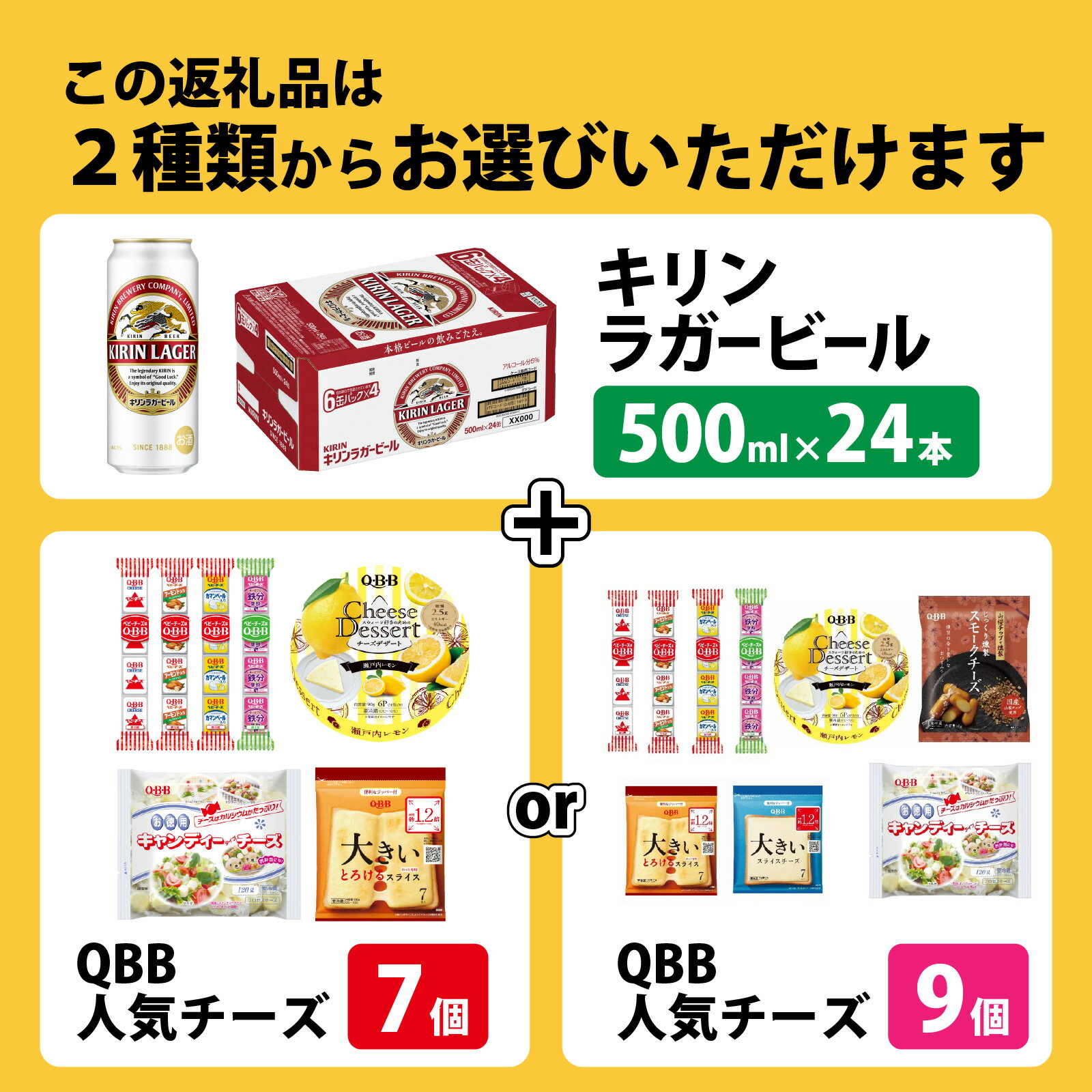 - 【ふるさと納税】【選べる内容量】キリンラガービール 500ml 24本 と QBBチーズ 7品 or 9品 / ビール キリンビール キリン 麒麟 KIRIN お酒 アルコール 缶ビール 缶 ラガービール 神戸 工場 チーズ おつまみ 晩酌 ギフト 兵庫県