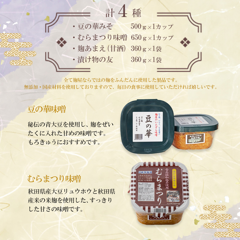 - 本多麹屋の味噌2種と塩麹・甘酒セット 55P5002