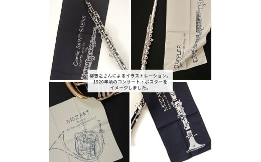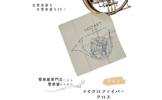 - 管楽器 のための マイクロファイバークロス 正方形〈ホルン柄 アイボリー〉 【管楽器専門店 マール・ミュージック オリジナル】管楽器の お手入れ に