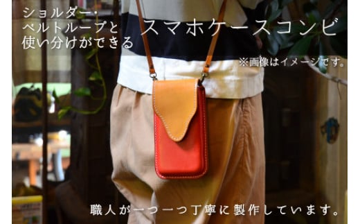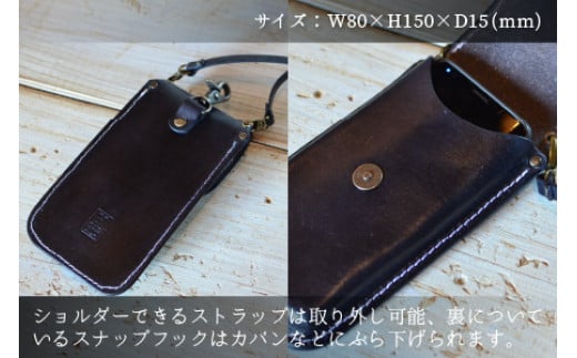 スマホケースコンビ(ショルダー付)【ブラック】【本革 牛革 スマホカバー スマホケース スマホ ショルダー付 手縫い 雑貨 おしゃれ ファッション オリジナル レザー職人 フウネレザーファクトリー】 [BFAJ069]
