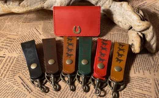 蹄鉄付き名刺入れ(レッド)&馬九いくキーリング(グリーン) 栗東市 / 株式会社ブルズエフ [BIAU182]