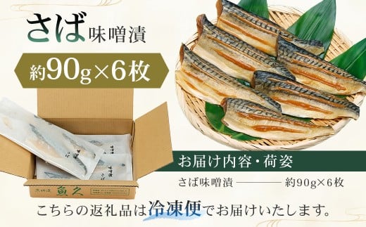 【京粕漬 魚久】さば味噌漬 6枚(2枚入×3パック) 約540g 【魚久 さば サバ 味噌漬 味付き 旨味 夕飯 おかず グルメ 食品 】