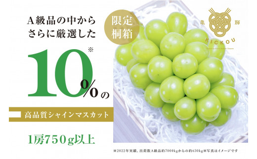 - 「亀輝」最高級シャインマスカット1房750g以上【限定桐箱入り】【2026年発送】(RO)D-123 【亀輝 シャインマスカット 葡萄 ぶどう ブドウ 令和8年発送 期間限定 山梨県産 甲州市 フルーツ 果物】