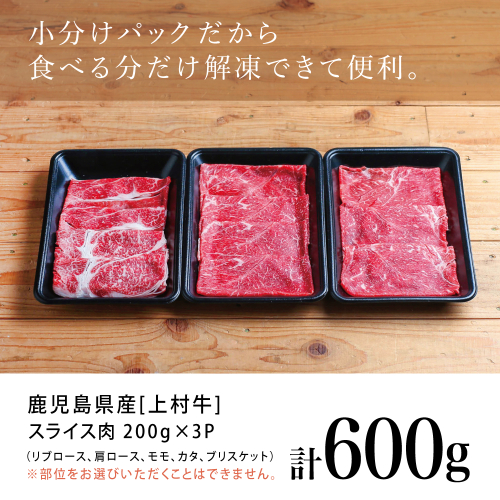 【自慢の自社ブランド牛】鹿児島県産 上村牛すき焼き・しゃぶしゃぶ用 厳選部位600g(200g×3P)