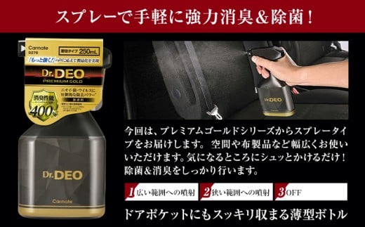 - 除菌 消臭剤 無香タイプ ドクターデオ プレミアムゴールド スプレータイプ D276×3個 株式会社カーメイト《7-14日以内に出荷予定(土日祝除く)》茨城県 結城市 車 カー用品 消臭スプレー カーメイト 車【配送不可地域あり】(沖縄・離島)