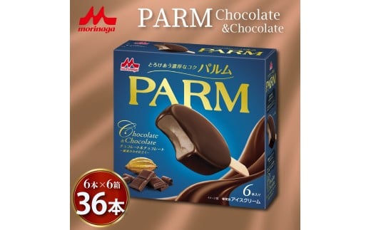 PARM チョコレート&チョコレート ~厳選カカオ仕立て~ 6本入り×6箱 計36本 森永 パルム アイス アイスクリーム アイスバー ぱるむ 洋菓子 お菓子 お歳暮 ギフト プレゼント 贈り物 人気 美味しい 贈答用 濃厚 森永乳業 静岡県 長泉町