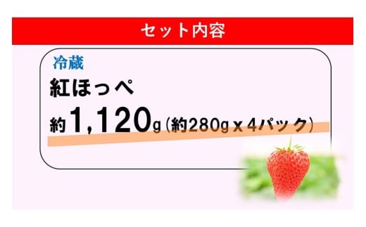 - 【九州内配送】【先行受付 2026年1月より発送】【農場直送!】紅ほっぺ(約280g×4P)【ふるさと納税 基山町産 いちご イチゴ 朝採れ 完熟果】K100026