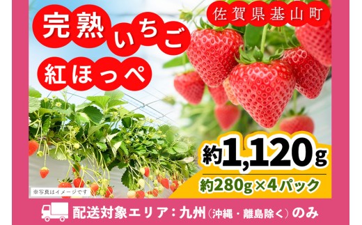 【九州内配送】【先行受付 2026年1月より発送】【農場直送!】紅ほっぺ(約280g×4P)【ふるさと納税 基山町産 いちご イチゴ 朝採れ 完熟果】K100026