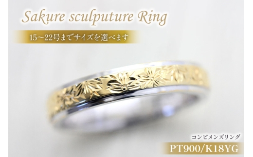 指輪 プラチナ PT900 K18YG イエローゴールド コンビ 15号~22号 メンズ リング 桜 手彫り彫刻 18金 マリッジリング 和風 アクセサリー ジュエリー アクセ 【239-ptygm】 [オーダーメイドジュエリーメイ 山梨県 韮崎市 20745069-h]