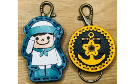 - 水兵さん&海自ロゴ レザーキーホルダーセット(青色)手作り 一点もの 革製品 レザー キーリング レディース メンズ 鍵 バッグチャーム ストラップ 革小物 水兵 海上自衛隊 ロゴマーク ギフト プレゼント 送料無料 広島県 呉市