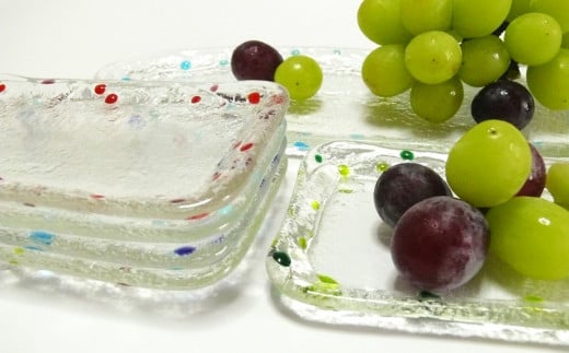 - 春待ち器 ガラスの長皿・取り皿5枚の6点セット【ガラス皿 デザート フルーツ アイス ドット 取り皿 かわいい さわやか プレゼント セット お祝 贈り物】K003107