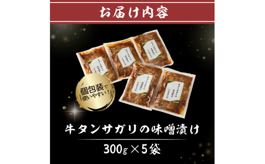 牛タンサガリの味噌漬け 300g×5袋【岐阜県 可児市 肉 お肉 牛肉 牛 味噌 赤味噌 味付き オリジナル 秘伝 炒め物 お弁当 おかず 簡単 時短 調理 料理 おつまみ 冷凍 食品 お取り寄せ グルメ 】