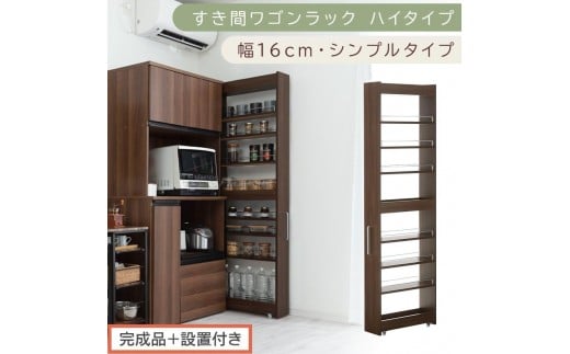 - 【完成品+設置付き】すき間ワゴンラック ハイタイプ〔幅16cm・シンプルタイプ〕(ウォールナット)隙間収納 キッチン キャスター付き キッチンワゴン スリム 収納 すき間収納 ランドリー ラック 薄型 KKONRA945193-0-WAL