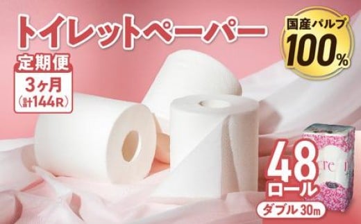 【3回配送/毎月届く定期便】 ナクレ トイレットペーパー ダブル 12ロール×4パック 48個 トイレット 日用品 消耗品 防災 パルプ 100% 無香料 厚手 収納 備蓄 人気 東北 金ケ崎 金ヶ崎