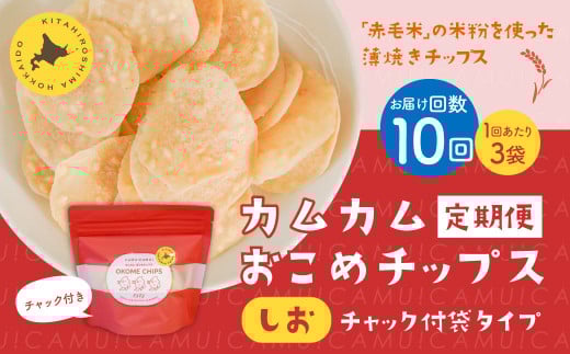 - 【1ヶ月毎10回定期便】 カムカムおこめチップス(しお) チャック付袋タイプ 計30個 (3個×10回) お菓子 菓子 スナック菓子
