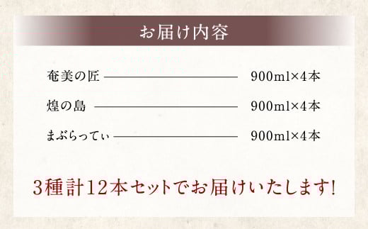 徳之島の黒糖焼酎 飲み比べセット 900ml×12本 計10.8L 瓶 まぶらってぃ 奄美の匠 きらめきの島 黒糖 焼酎 酒