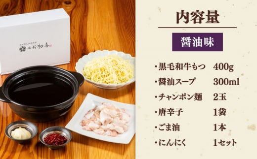 - 【年内発送】黒毛和牛 もつ鍋 セット2〜3人前 醤油味 (野菜なし) [離島配送不可] ▼ 博多 和牛 醤油 2人前 3人前 鍋 桂川町/西新初喜[ADAX001]