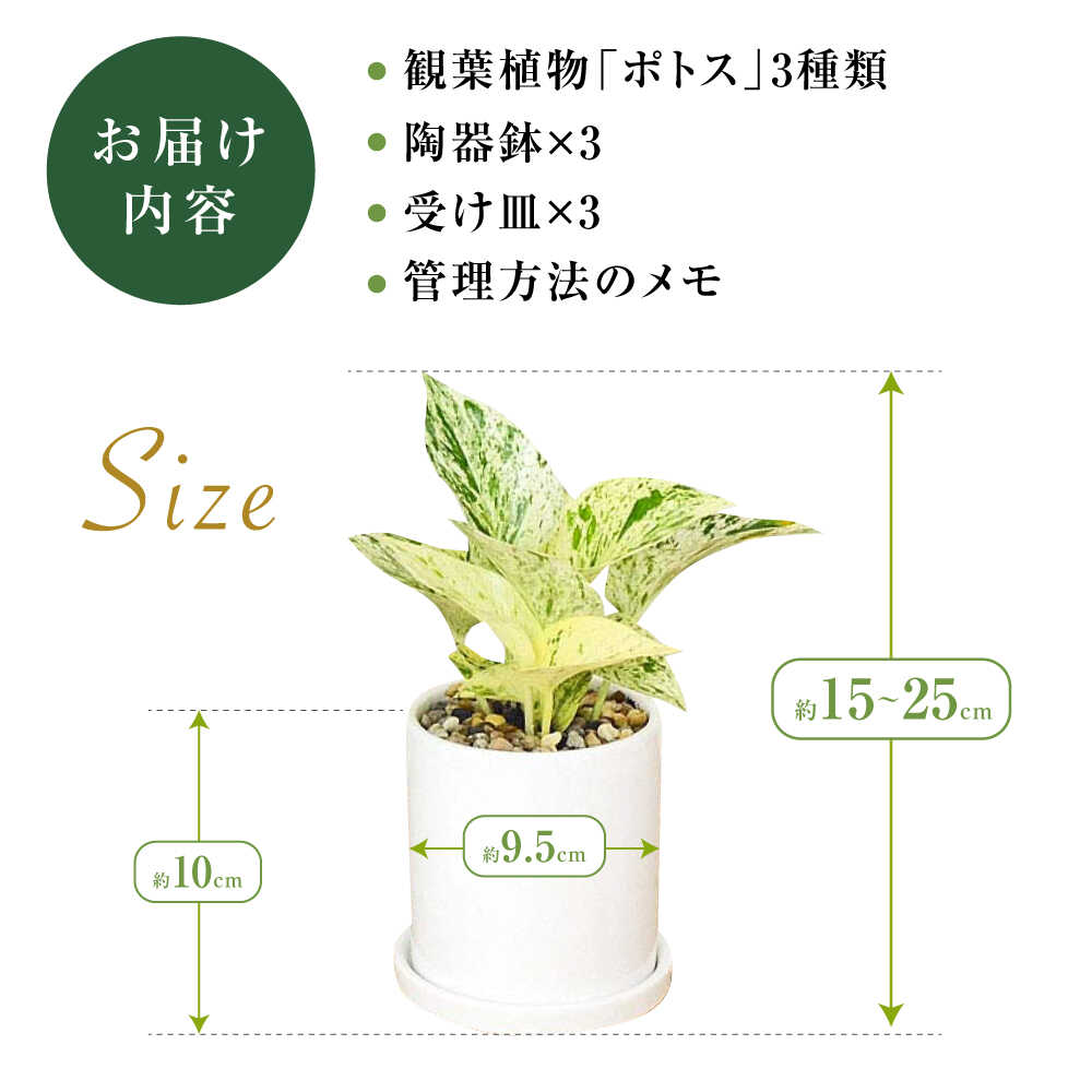 - 【ふるさと納税】観葉植物 ポトス 3種類 3鉢セット/観葉 観葉植物セット ぽとす 植物 鉢 インテリア おしゃれ プレゼント/大村市/琴花園[ACYK037]