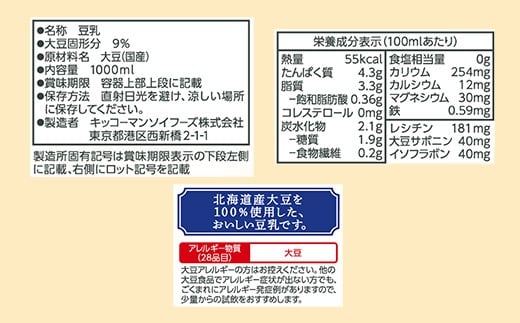【合計1000ml×18本】北海道産大豆 無調整豆乳 1000ml / 飲料 キッコーマン 健康 無調整 豆乳飲料 大豆 ソイミルク パック セット 茨城県 五霞町