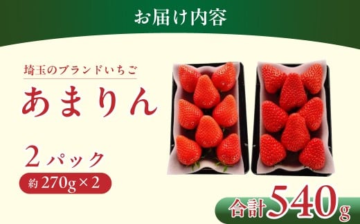 - いちご あまりん 270g × 2パック 【4月以降発送】合計 540g | いちご イチゴ 苺 あまりん ストロベリー ベリー 果物 くだもの フルーツ 季節限定 先行予約 新鮮 採れたて 農家直送 ブランド苺 美味しい おいしい 甘み 甘い デザート スイーツ ギフト 贈り物 人気 苺 テレビ 話題 お取り寄せ ビタミン 埼玉県 久喜市