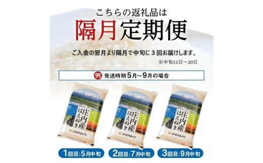 - ≪隔月3回定期便≫ はえぬき 5kg×3回 計15kg 山形県庄内産 隔月で中旬にお届け 東北 山形県 酒田市 庄内地方 米 精米 白米 お米 ごはん ご飯 庄内米 農協 JA 小分け 少人数 隔月 定期便 産地直送 JA庄内みどり SE0523