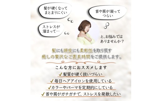 - 「髪も頭皮もやわらかな癒しでご褒美タイム」ご利用券 ヘッドスパ 酵素トリートメント 高濃度酸素水ケア 90分コース