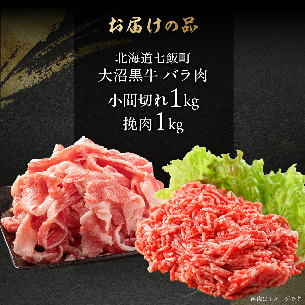 【ふるさと納税】大沼黒牛小間切れ(バラ1kg)・挽肉1kgセット 【ふるさと納税 人気 おすすめ ランキング 北海道ブランド牛 大沼黒牛 黒毛和牛 冷凍 小間切れ 細切れ バラ ひき肉 挽肉 おいしい 北海道 七飯町】 NAM013