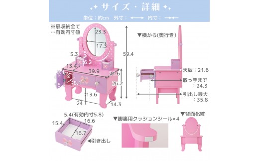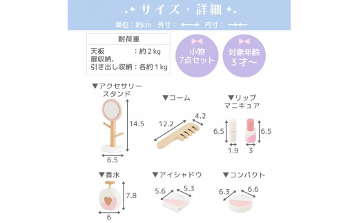 - 【完成品でお届け】キッズドレッサードレッサー おもちゃ 木製 メイクセット キッズ 女の子 コスメセット 化粧品 玩具 子供 おままごと ミニドレッサー 知育玩具 幼児 コンパクト かわいい ピンク 姫系 EKANTC001627-0-0