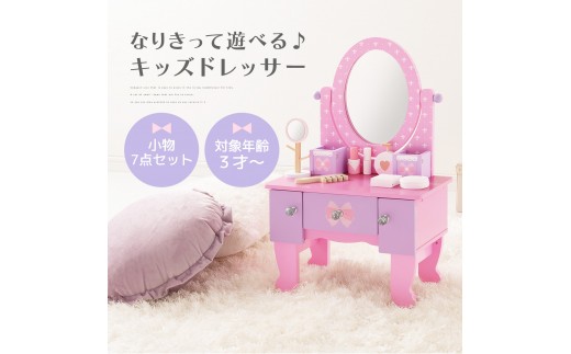 【完成品でお届け】キッズドレッサードレッサー おもちゃ 木製 メイクセット キッズ 女の子 コスメセット 化粧品 玩具 子供 おままごと ミニドレッサー 知育玩具 幼児 コンパクト かわいい ピンク 姫系 EKANTC001627-0-0