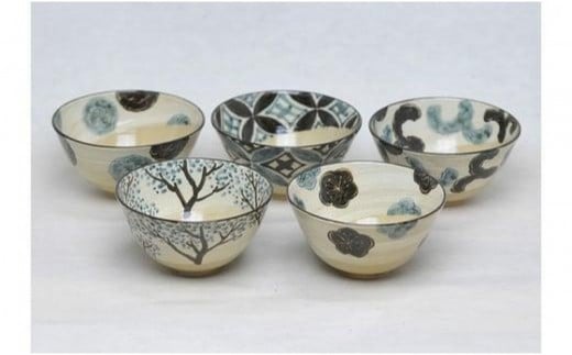 - 乾山 絵替飯碗 5柄セット【水間焼伏原窯】