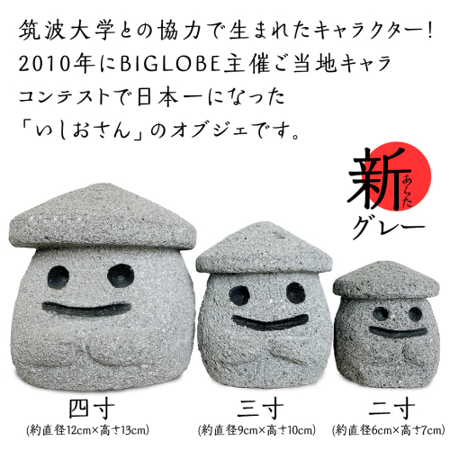 『和みいしおさん 新(あらた) グレー 』三寸(直径9cm×高さ10cm) 置物 置き物 石像 ガーデン オブジェ インテリア 石 雑貨 職人 手作り 手づくり 石匠 石匠のまち 石匠の見世蔵 プロジェクト 茨城県 名物 キャラクター ゆるキャラ いしおさん [AE008sa]