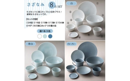 - 【美濃焼】 さざなみ 8形状各4枚セット 24丸皿 16丸皿 19鉢 13取鉢 10小鉢 マグカップ 8.5猪口カップ 9フタ小皿 ホワイト 白 瑞浪市 / JS企画 小田陶器 小皿 プレート 鉢 小鉢 カップ [AZAZ161]