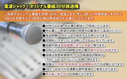 - 【はれラジ】電波ジャック! 30分オリジナル番組放送権(6ヶ月分)|FMとうみ(ラジオ30分放送×6回)