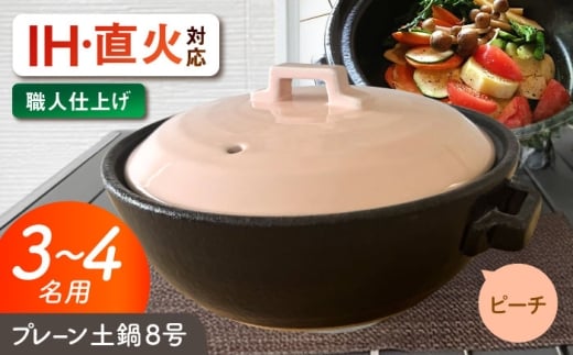 - 【美濃焼】 プレーン土鍋 8号 (3-4名用) ピーチ ガス、IH両対応 IHプレート付 ina063 瑞浪市 / ながしまプランニングオフィス 陶器 どなべ 鍋 レンジOK オーブンOK [AZBM206]